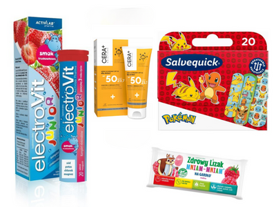 Pakiet ochrony dla dzieci: krem, plastry, elektrolity i słodki lizak na gardło - górski zestaw dla maluchów!