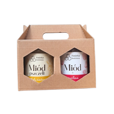 Pasieka Rodzinna zestaw prezentowy miód wielokwiatowy i malinowy 2 x 240 g