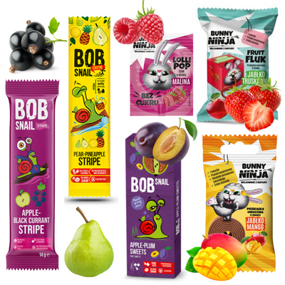 Bob Snail owocowe ZDROWE przekąski MIX w różnych smakach ZESTAW 7 x 40 g