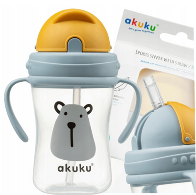 Kubki posiadają miękkie ustniki, zaprojektowane z myślą o delikatnych dziąsłach dziecka oraz czytelną miarkę. Bidony posiadają słomkę oraz wygodny klips pozwalający przypiąć go do paska, torebki lub wózka, co jest przydatne podczas spacerów.