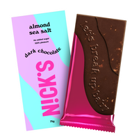 ( ilość produktów: 77 )NICK'S gorzka czekolada z migdałami i solą morską bez cukru 75 g