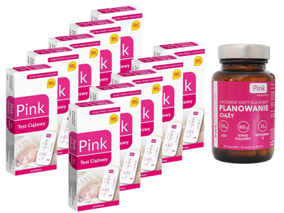 Pink Test ciążowy płytkowy 10 opakowań PLANOWANIE CIĄŻY + suplement Pink Mama