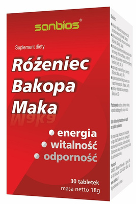 SANBIOS Różeniec SUPERFOODS Bakopa Maka Niacyna B1 B2 30 tabletek