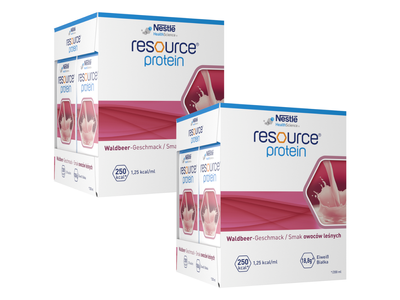 Resource Protein to kompletna pod względem odżywczym, wysokobiałkowa dieta w płynie. Żywność specjalnego przeznaczenia medycznego, do postępowania dietetycznego w stanach niedożywienia i/lub w przypadku ryzyka niedożywienia, któremu może towarzyszyć zwiększone zapotrzebowanie na białko, związanego z chorobą, np.: