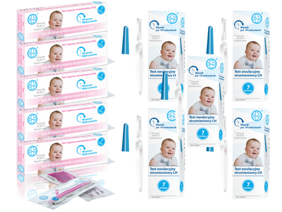 - Siedem testów owulacyjnych ONE Step LH strumieniowy;